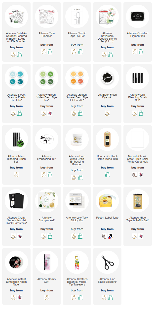 As I say in the video, I really love the graphic look of this tag. I like having the black and white background with the pop of colour from the flowers. I did experiment with a teal background but ultimately liked the black and white better! Thank you so much for stopping by today, I really do appreciate it. I will be back later with a look at the new Altenew release but for now, I hope you have a wonderful day!