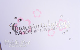 Hello there, welcome to day two of Clearly Besotted Teasers. Today I am sharing two bridal/wedding themed sets with you. The first is called Love Blossoms and it has some beautiful cherry blossoms in it as well as some stunning sentiments. For my card I have kept it very simple and used two sizes of the cherry blossoms and stamped these with HA Soft Pink ink and then stamped the sentiment over the top with Versamark and then silver embossing powder. I simply finished it off with a few rhinestones.
