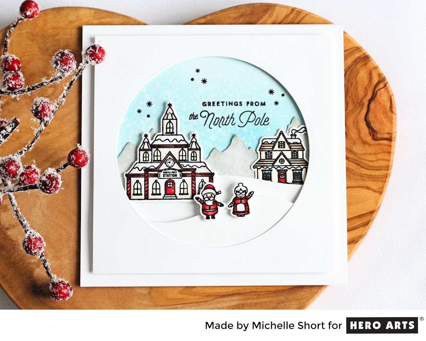Hello there, today we are celebrating the release of the October 2017 My Monthly Hero Kit from Hero Arts. It is called Destination North Pole and let me tell you, it is fabulous! I adore the stamp set in the kit, it is filled with lovely little images that are perfect for creating scenes with.
