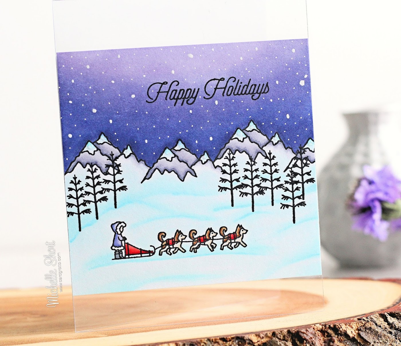 ReplyDeleteBeautiful card! Love your mountains and trees!! The dog sled team is definitely part of a winter scene.