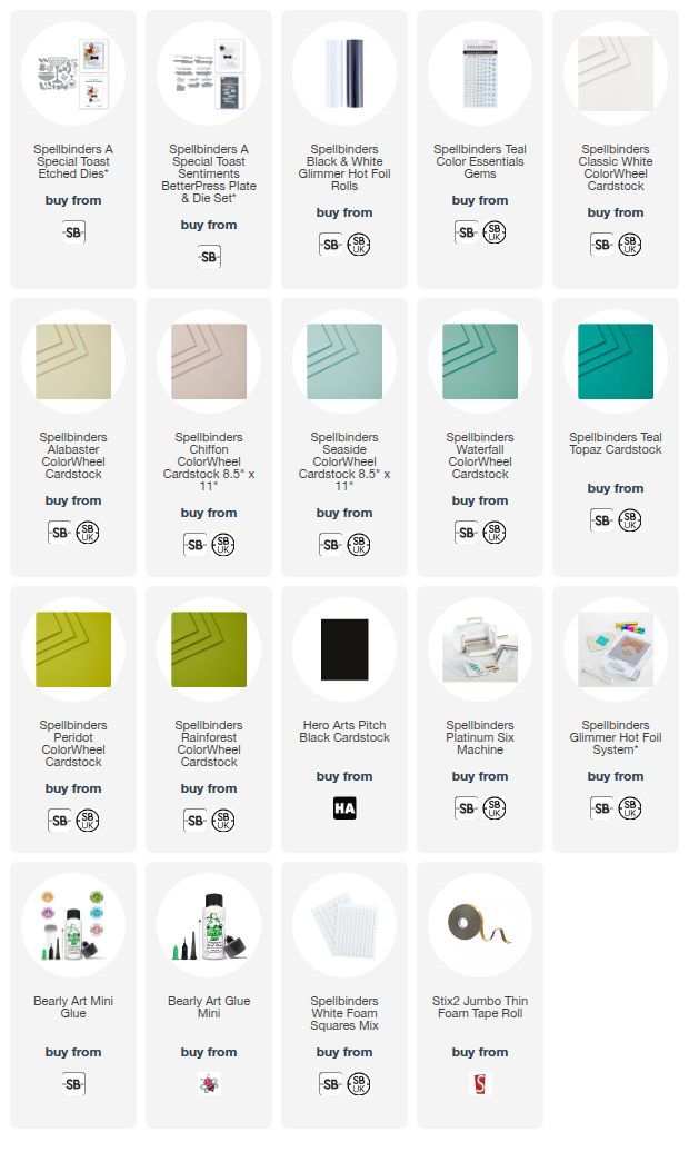 The foliage was adhered to the card first, using Bearly Art Glue. The flowers were assembled and adhered to the card with foam squares. I hot foiled the sentiment from the Spellbinders A Special Toast Sentiments BetterPress Plate & Die Set onto white cardstock using Spellbinder Opaque Black Foil and the Glimmer Hot Foil System.