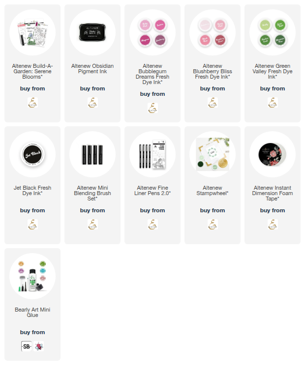 I followed the inspiration photo above using the two shades of pink from the fuchsias in my garden. I used Altenew Bubblegum Dreams Fresh Dye Inks (Baby Pink, Fuchsia & Magenta) for the dark pink tones and Altenew Blushberry Bliss Fresh Dye Inks (Strawberry, Dusty Pink & Blush Rose) for the light pink tones.