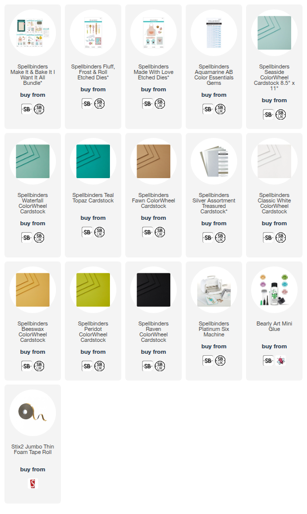 Hello there, I was over on the Spellbinders Blog yesterday sharing three cards using the new Make It & Bake It Collection by Tina Smith. If you love baking, or know someone who does, you are going to love this collection! I had so much fun cutting and assembling all the utensils for the card below!